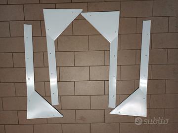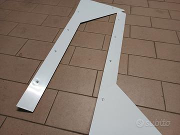 angolari fermavetro bianchi in plastica . forniti solo a serie di 4 pezzi (2 dx, 2 sx) . altezza : 40 mm lunghezza: 615 mm larghezza: 24/4,5 mm compatibili con calcetti longoni, stadium, storm, fas, fabi . adattabili anche sui modelli garlando e roberto sport.