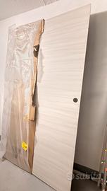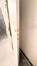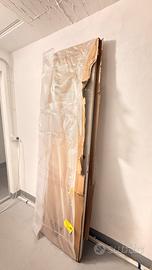 Anta tamburata di spessore nominale 44 mm, riempimento in cartoncino trattato, placcato con pannelli in MDF spessore 3/4 mm nobilitato con carta finish. Telaio piatto in MDF di spessore 40 mm Scorrevole. Dimensioni 210x60 cm. Colore frassino bianco.