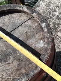 antica botte da restaurare dimensioni 34x52hx26 base stato da restaurare, in un lato gli anelli di metallo si sfilano