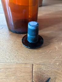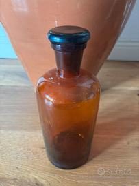 Antica bottiglia da farmacia in vetro ambrato, ideale per collezionisti o come elemento decorativo vintage.