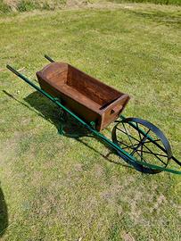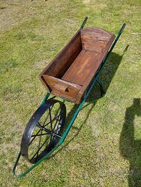Vendo antica carriola fine ottocento con setaccio removibile, come si vede da foto dove lo stesso è presente nelle prime tre e assente nelle altre. Usata un tempo per trasporto oggetti e come tramoggia per la farina setacciata, ora è un meraviglioso e caratteristico arredamento per verande, taverne, porticati, cortili e come porta vasi con fiori. ● Misure: estremità comprese lunghezza 180 cm larghezza 42 cm altezza 60 cm ● Nessun problema per il trasporto, dispongo di furgone evitandovi le gravose spese dei corrieri.