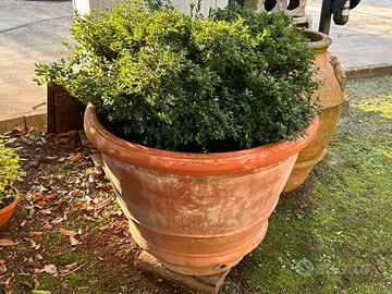 Antica conca in terracotta di Impruneta del 1940, diametro interno 90 cm, marchiata con nome della fornace. Presenta una filatura leggera che è stata riparata, non molto visibile. Azalea non in vendita. Possibilita di consegna previo accordo entro 300 km.