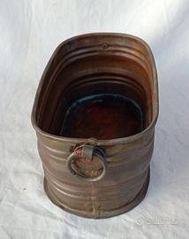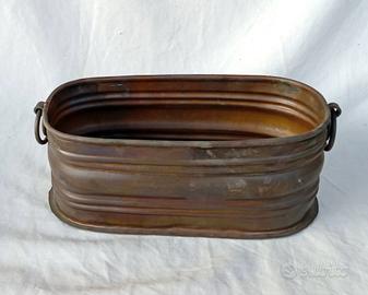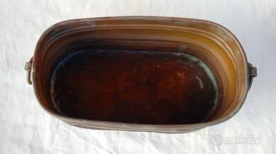 Antica fioriera ovale in rame con manici in ottone. Bellissima patina. Misura cm. 23 x 12 Altezza cm. 9