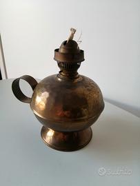 Antica lampada ad olio in ottone martellato con finitura patinata tutto originale come da foto Ottime condizioni Euro 45
