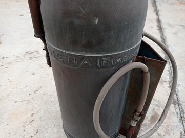 Antica pompa irroratrice Signa Firenze Angiolo e Armando Del Taglia per irrigazione manuale botte d'epoca da collezione vintage per spargi verderame da esposizione