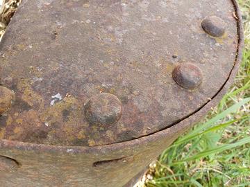 Antica secchia o tazza per catenaria di draga realizzata in ferro battuto. Diametro maggiore 40 cm altezza 35 cm