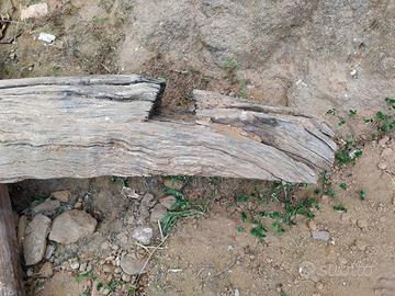 Trave antica, recuperata da tipica costruzione sarda campidanese, probabilmente di olivo od olivastro. Tre inserti metallici con anelli (vedi foto) Lunghezza mt. 4,60.