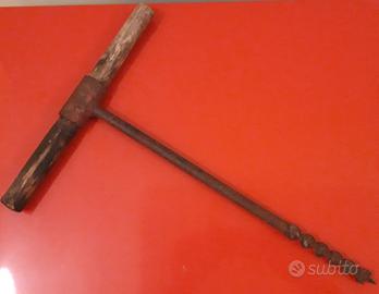 ANTICA TRIVELLA DA FALEGNAME LUNGHEZZA 39CM, LARGHEZZA 27CM, DIAMETRO PUNTA 15MM, DIAMETRO MANICO 25MM