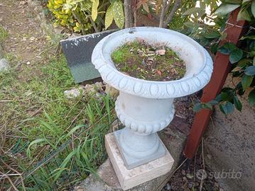 antica urna in ghisa con basamento in marmo,alta cm.56 diametro cm.34