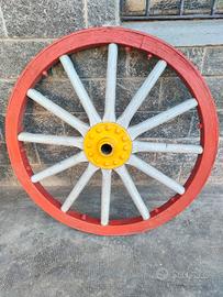 Vendo antiche ruote in legno con cerchio e mozzo in ferro. Sono di un carro militare. Possono essere usate come elemento di arredo interno o giardino. Prezzo leggermente trattabile