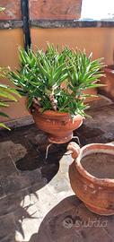 GRANDI coppe antiche in terracotta con manici laterali. Impruneta. Provenienti da antica Villa in Toscana. Ambedue prive di una parte di manico che nulla toglie al fascino antico. Per il resto ambedue integre. Patina d' epoca.