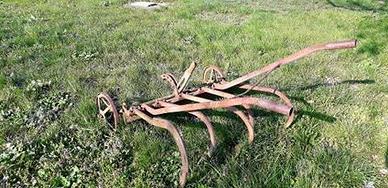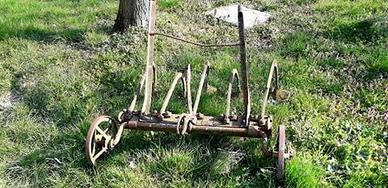 Antico aratro, arredamento giardino
