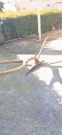 vendo antico aratro in legno, chiamato aratro a chiodo del 1800,lunghezza 3 metri con forche smontabile