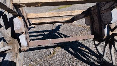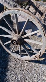 Antico carro agricolo in legno con ruote cerchiate in ferro.