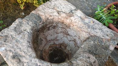 Vecchio, vecchissimo mortaio in pietra viva scalpellato a mano, (non come quelli fatti con le frese automatiche) è stato riparato con del cemento ma una mano esperta lo sistemerebbe senza notare la riparazione. Misura 30x30 alto 32cm Pesa 41,6 kg, Previo accordi lo posso consegnare personalmente nel raggio di 30 Km. Non spedisco. Valuto offerte (non meno di 120€ ) Uno uguale è impossibile trovarlo. Grazie 3392787847