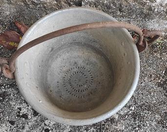 Antico d'epoca paiolo pentola in rame interno stagnato con fondo bombato, ideale per polenta ma anche per tutti i cibi a base di pomodoro o similari grazie all'interno stagnato.