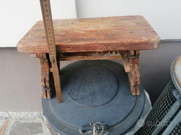 Vecchio sgabello in legno, rinforzato molto stabile e robusto. Posso anche spedire