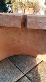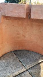 Lampada applique in cotto fatto a mano, di circa 5 kg, misura diametro alla base 38, altezza 30 cm. Acquistata da UNO PIÙ. Pensata come copertura di un punto luce a parete.