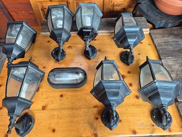 Applique da parete per esterni 7 pezzi color nero compreso lampade piu una plafoniera ovale