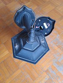 Vendo coppia di applique per esterno del marchio Philips, colore nero, da tassellare a parete, stile vintage, modello tipo lanterna, corpo in ghisa opacizzata e inserti in vetro. Cedo causa trasloco e inutilizzo. Perfettamente funzionanti e condizioni buone, qualche segno normale di usura dovute al tempo. Prezzo trattabile per rapida conclusione della trattativa.
