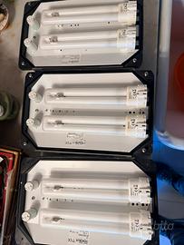 Appliques per esterno stagni . Guarnizioni nuove . Completi di lampade al neon ( bianco naturale) 2x 18 watt ciascuna . Molto luminosi . Vendita in blocco
