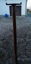 Struttura solida in ferro con supporto superiore sagomato per tubi e materiali cilindrici. Base ottagonale in legno stabile e robusta.
