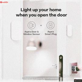 Informazioni su questo articolo Osservazioni: Aqara Hub è richiesto, venduto separatamente. Richiede una connessione di rete Wi-Fi sicura a 2,4 GHz. Un hub Aqara può collegare fino a 32 dispositivi Aqara. Rilevamento ingresso non autorizzato: ogni volta che la porta/finestra si apre inaspettatamente, il rilevatore di Sensore per Porte e Finestre Aqara invierà una notifica di avviso al telefono e attiverà l'allarme locale sull'hub Aqara. Domotica: il Sensore per Porte e Finestre Aqara può monitorare altri dispositivi collegati ad Aqara quando lo stato della porta o della finestra cambia. Apertura larga 22 mm consentita: il rilevatore di Sensore per Porte e Finestre Aqara funziona con la maggior parte dei tipi di porte, finestre e altri dispositivi con un meccanismo simile, come cassetti, armadi, ecc. Controllo vocale: compatibile con Apple Home Kit, Alexa per un'esperienza a mani libere.