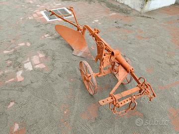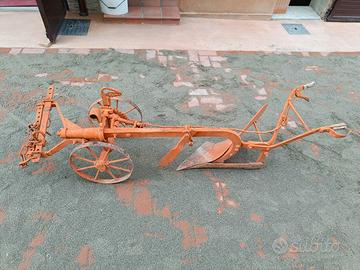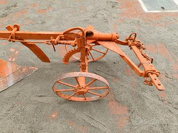 Vendo aratro d’epoca in metallo, verniciato in arancione, completo di ruote e vomere curvo. Struttura solida e originale, con meccanismi di regolazione e attacco per trazione animale o trattore. Ideale come elemento decorativo per agriturismi, giardini rustici, musei agricoli o fiere tematiche.