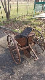 Aratro e seminatrice antichi in ferro. Sono ideali per abbellire il giardino e la seminatrice può essere usata come fioriera.