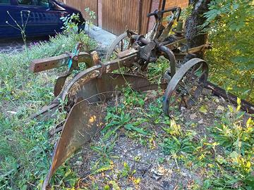 Aratro da collezione con due vomeri destro e sinistro, da riverniciare e ricondizionare.