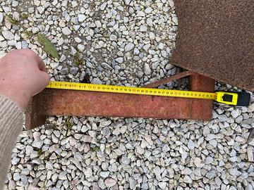 Aratro per motocoltivatore, fatto artigianalmente, attacco quadrato 11,4cmx11,4cm, braccio lungo 40cm. Usato pochissimo, un po’ arrugginito perché sta fuori sotto una tettoia.