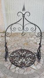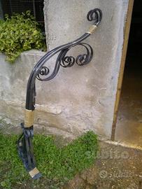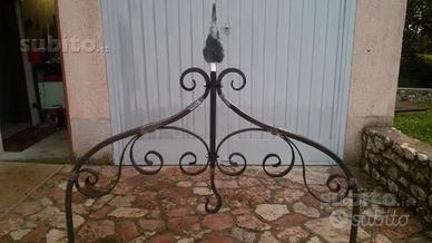 costruito con tubolare quadro da 2cm e riga piegata e battuta manualmente a caldo il tutto assemblato con saldatura e con fascette di abbellimento per coprire le saldature.