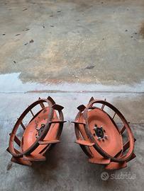 vendo arginatotori per motozappa da 7 a 10 CV.,innesto 27 mm, diametro 40 cm, larghezza 38 cm(X2)molto robuste, usate ma in ottime condizioni.Ruote in ferro,diametro 46 cm.,larghezza 12 cm. innesto 27mm. .Ruote 4.00 8 con innesto da 27 o 30 mm. Per informazioni potete contattarmi.