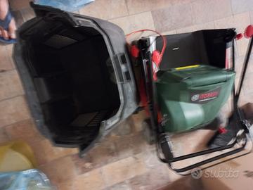 Vendo arieggiatore scarificatore elettrico Bosch per cambio casa senza giardino, motore 1100 watt, lame in acciaio oscillanti, cesto di raccolta 50 l, larghezza lavoro 33 cm, minimo ingombro quando si ripone perchè le impugnature sono ripiegabili e il cesto di raccolta è impilabile. Ottimo per arieggiare i prati e pulire da muschio ed erbacce, scalfire il terreno per semina. usato pochissimo, con manuale d'istruzioni.