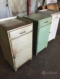 3 Bellissimi armadietti in ferro. Adatti per qualsiasi tipo di negozio/casa/attività.Completi di ripiani e risalenti agli anni 70.Dimensioni 50x51x h 100,peso circa 44kg l'uno.Prezzo 250 euro cadauno. Per chi li volesse acquistare insieme sconto.