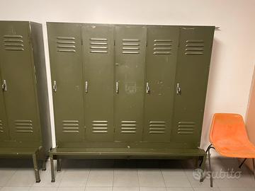 Armadietti per spogliatorio Formati: 2 scoparti 50€, 1 disponibile 4 scoparti 100€, 2 diponibili 5 scoparti 125€, 4 disponibili Ritiro di persona o a carico dell’acquirente Dimensioni: Quello con 2 scomparti 72x50x180cm Quello con 4 scomparti 140x50x180 cm Quello con 5 scomparti 176x50x180 cm