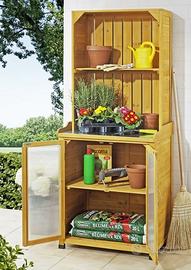 Il piano zincato permette di utilizzare l'armadio come banco da lavoro per giardinaggio.