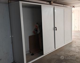 Vendo armadio in alluminio con montaggio a muro. L'armadio è in ottime condizioni e presenta 4 piccole fessure utilizzate per far passare dei cavi, ma non ne compromettono l'utilizzo. E' dotato di due ante scorrevoli da circa 2 metri l'una con chiusura a chiave.