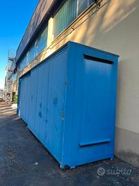 Armadio di ampie dimensioni per attrezzature varie da giardino o garage. colore blu ben tenuto. l'armadio è dotato di porte con chiavi come si vede nelle foto. dimensioni: lunghezza 8 metri, altezza 2,80/3 metri e larghezza 1,5 metri. prezzo trattabile e spese di spedizione indicative e commisurate alla distanza dell'acquirente.