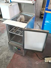 armadio frigo statico usato, si tratta di un frigo professionale in acciaio inox munito di doppio accesso, infatti ha uno sportello classico per la carica frontale e una porta pieghevole sopra, questo perché era montato ad incasso sul piano vendite di un locale che faceva bubble tea. di marca Cooling Equipment mod. SAH47 funzionante a 220/240v dotato di ripiani interni, visualizzatore della temperatura e motore a bordo.