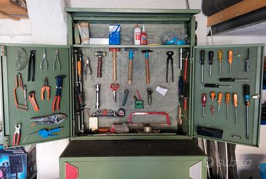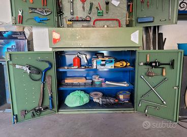 Vendo armadio porta attrezzi per officina molto versatile e funzionale. Gli attrezzi non sono compresi, sono a titolo dimostrativo. Posso comunque cederne una parte in blocco. Il prezzo è trattabile.