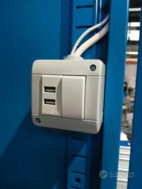 Armadio a 2 ante 3 cassettiere con divisori regolabili spine corrente, luce led e attacco USB Svariati agganci per dispenser, scatolette porta minuterie piano lavoro chiusura con serratura e doppia chiave Altezza circa 2 metri