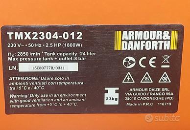 Compressore d' aria 24 litri Armour&Danforth, come nuovo, vendo a 85 euro ( compresa pistola d' aria + olio di lubrificazione).