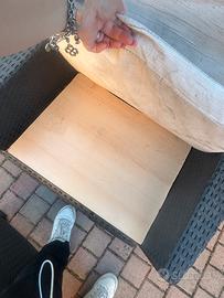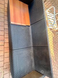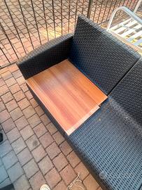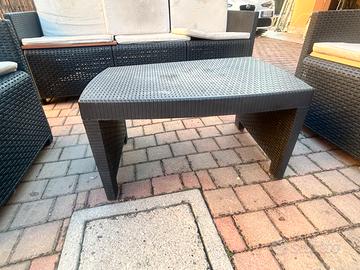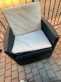 Usato ..una poltrona e un sedile dei tre posti ha la plastica della seduta crepata stando fuori ma ho messo una seduta in legno spessa ed ho risolto.. tavolino ok,, non spedisco