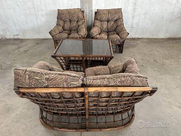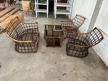 Arredamento in rattan - bambù vintage usato da giardino , terrazzo, patio composto da