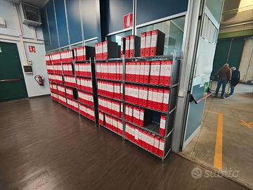 -n°9 moduli, scaffali leggeri in metallo, 5 mensole, h. 180cm, l. 90 cm.