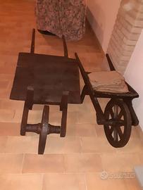 carriole in legno una con pianale l' altra per canali e stalle con ruote in legno euro 550 cadauna