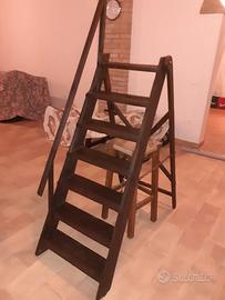 scala doppia in legno del 1800 con corrimano, richiudibile euro 450