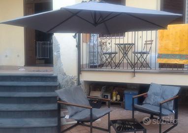 Vendo arredo da esterno composto da 2 poltrone con cuscini 1 tavolino 1 tendone In ottime condizioni , acquistato pochi mesi fa. Comodo e pratico per giardino, terrazzo o veranda. No peeditempo