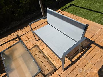 Arredo da giardino esterno in acciaio; 1x divano doppio: 107 x 60 x 85 cm 2x poltrone: 60 x 62 x 84cm 1x tavolo: 80 x 48 x 45 cm Caratteristiche: Rattan sintetico di alta qualità resistente agli agenti atmosferici e ai raggi UV Il piano del tavolo è realizzato in vetro temperato con uno spessore di 5mm molto resistente,